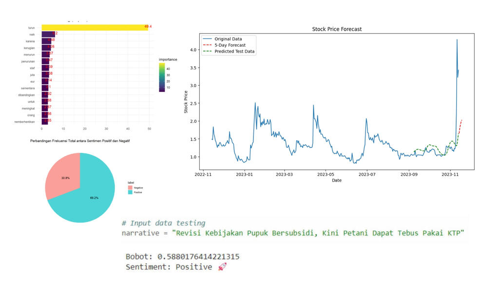 Finance AI is a team project from PukulEnam (a data technology company offering solutions and services to improve data literacy in Indonesia) to develop their online news website by adding a widget to predict the next day's stock prices using sentiment analysis and time series forecasting of historical data from the Yahoo Finance website. Our goal is to give traders and regular folks (readers of the Finance News) an easy tool for quick insights into market vibes and accurate predictions of stock prices at the start of trading.