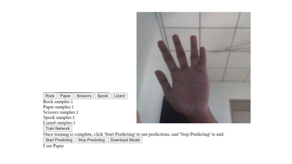 This project introduces an extension to the traditional Rock, Paper, Scissors game by incorporating additional hand gestures: Lizard and Spock. The objective is to train a machine learning model directly in the browser using a webcam.