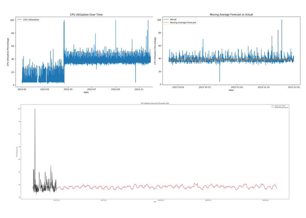 Developed a predictive model to forecast server CPU utilization on an hourly basis using historical data from January to November 2023. Implemented three different time series models—Moving Average, S-curved Trend Model, and LSTM—to compare forecasting performance. The models were evaluated based on accuracy metrics, and the best-performing model was used to predict CPU utilization trends for December 2023. This analysis helps in proactive resource management and server performance optimization.